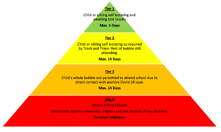 - Key Workers/Vulnerable Children – will complete remote learning as outlined in Tier 3 in school. They will be supported by any available / additional staff.