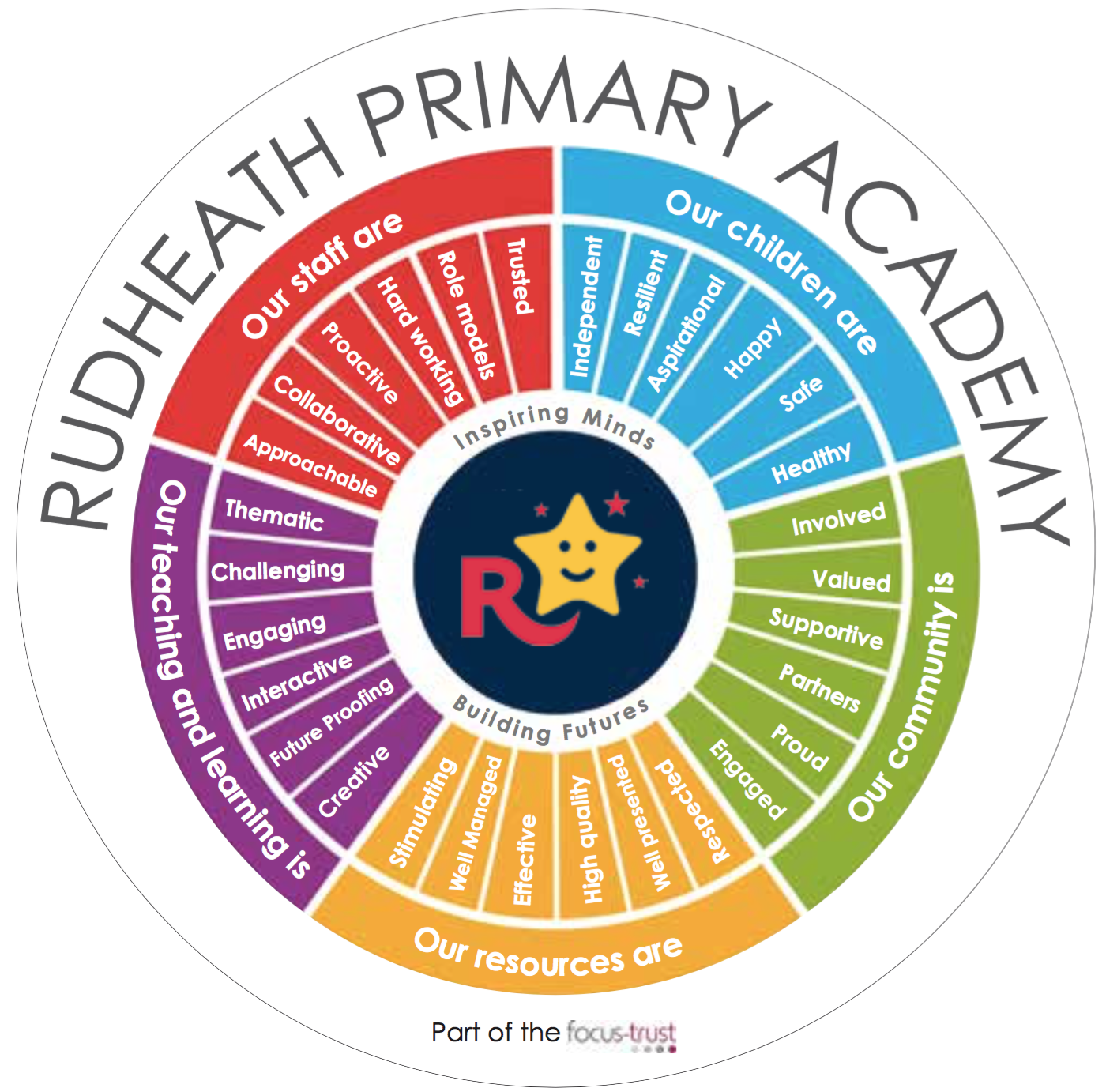 Our “Inspiring Minds, Building Futures” wheel replaces our old vision and values and was a created through an initial meeting in January 2016 and further feedback from parents and other stakeholders in February. Thank you all so much for your comments. I hope that you agree that our wheel is a true representation of what our school is and will continue to be.